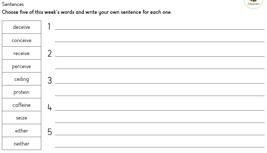 Each week, your child will complete one spelling task plus an alternating maths or SPAG task.